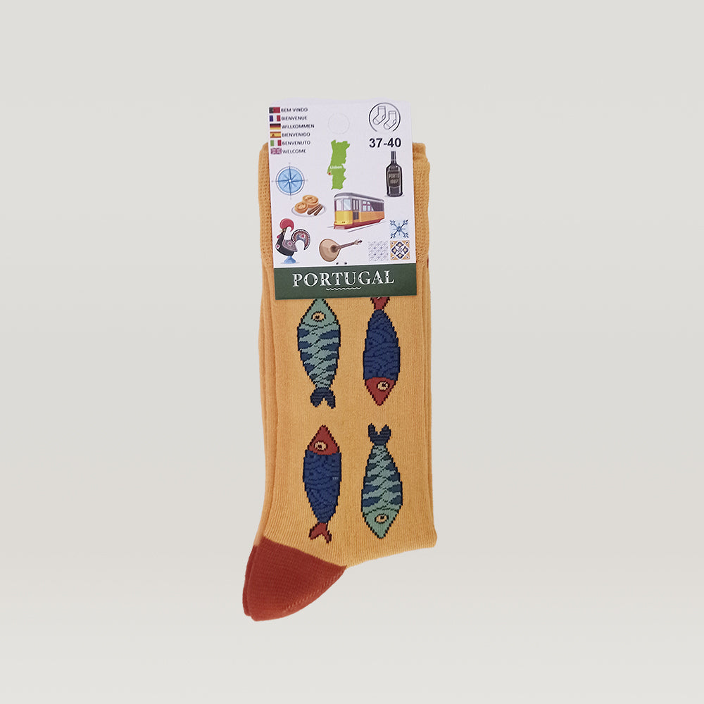 Get hooked on style with our Cotton Sock - Portuguese Sardine! These socks feature a playful portuguese sardine theme, while being made from high quality cotton for ultimate comfort. Stay trendy and have a little fun with your footwear. (Warning: may cause compliments and fish puns).